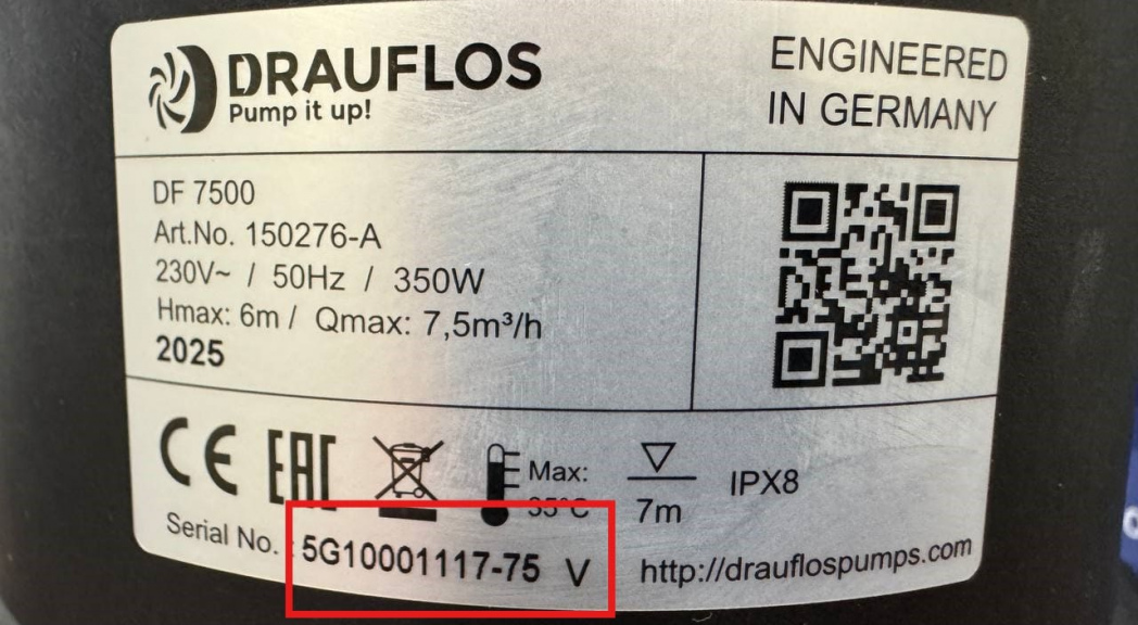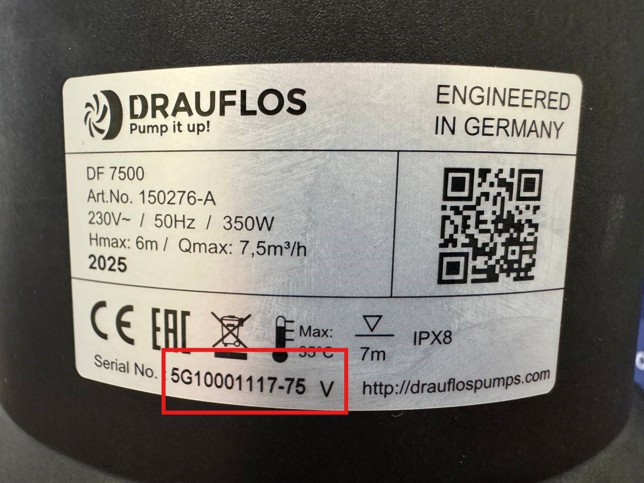 Модернизированные насосы можно отличить по литере V после серийного номера.