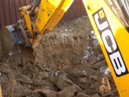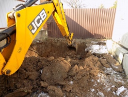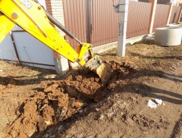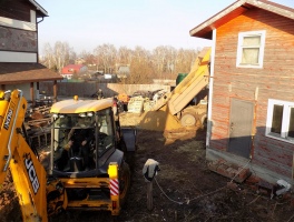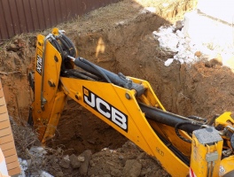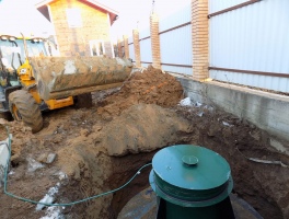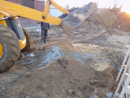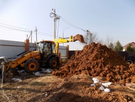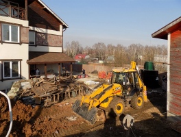 В 13 часов на объект доставили станцию биологической очистки Евролос Био. Но песок к этому времени так и не был доставлен, поэтому монтаж септика был невозможен. Для того чтобы не простаивал экскаватор, частично вывезли выбранный из котлована грунт.
