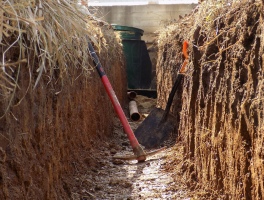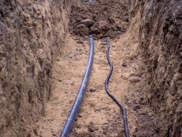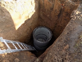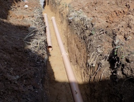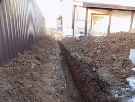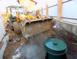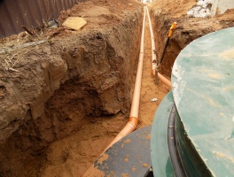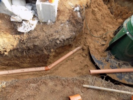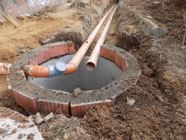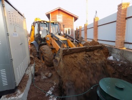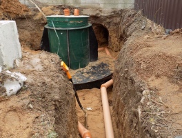 Параллельно велась разработка траншей для двух трубопроводов — подводящего и отводящего — которая была завершена к 12 часам на 70%. Подготовить траншею на 100% было невозможно до тех пор, пока не будет отпущена в котлован станция, так как на объекте был большой перепад высоты. Нарушение порядка монтажа элементов автономной канализационной сети, как произошло на этом объекте из-за отсутствия песка , может привести к тому, что труба поднимется слишком высоко или, напротив, станцию придется опускать ниже уровня нуля.