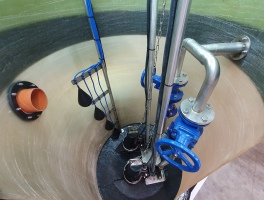 Комплектные КНС производятся в корпусе из стеклопластика либо нержавеющей стали, внутри которого размещается насосное оборудование, а также различные датчики, отвечающие за стабильность работы. Контроль осуществляется на внешнем щите управления, который может также быть оборудован автоматикой.